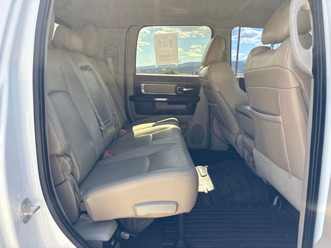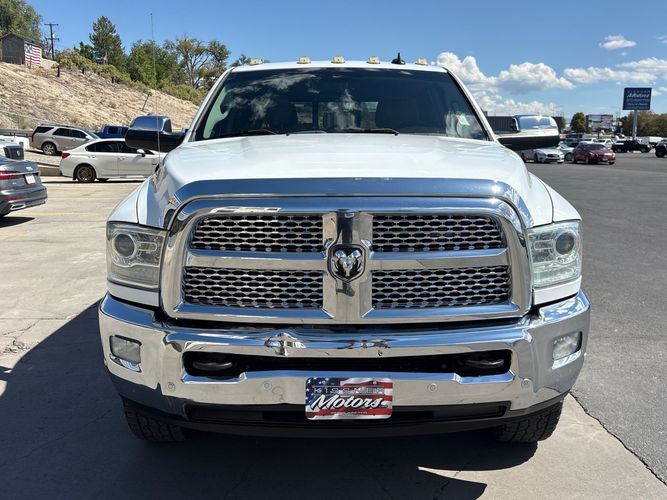 Experience the power and luxury of the 2016 Ram Pickup 3500 Laramie, a robust truck designed for those who demand more from their vehicles. With its striking Bright White Clear Coat exterior, this Crew Cab combines rugged capability with refined style. Under the hood lies a formidable Cummins 6.7L Diesel Turbo I6 engine, delivering an impressive 350 horsepower and 660 lb-ft of torque to tackle any challenge with ease. The advanced four-wheel-drive system ensures superior traction on all terrains.