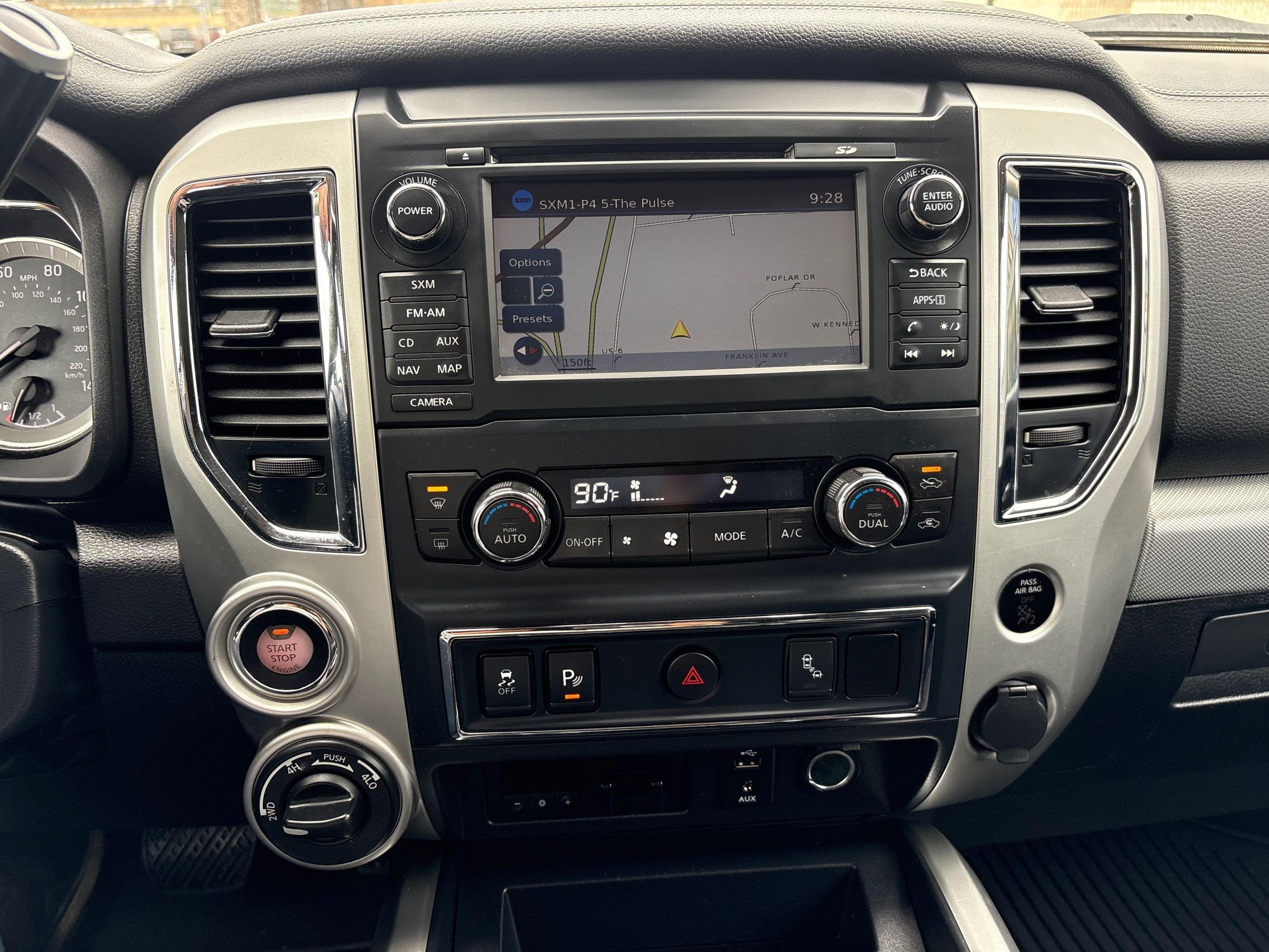 Experience the power and versatility of the 2017 Nissan Titan PRO-4X, a robust pickup truck designed to tackle any adventure with confidence. This Crew Cab beauty comes in an eye-catching Magnetic Black exterior that exudes strength and sophistication. Powered by a formidable 5.6L V8 engine delivering an impressive 390 horsepower and 394 lb-ft of torque, this beast is ready for both rugged terrains and smooth highways alike. With its advanced 4WD drivetrain, you can conquer any landscape while enjoying seamless gear transitions courtesy of the 7-speed shiftable automatic transmission.