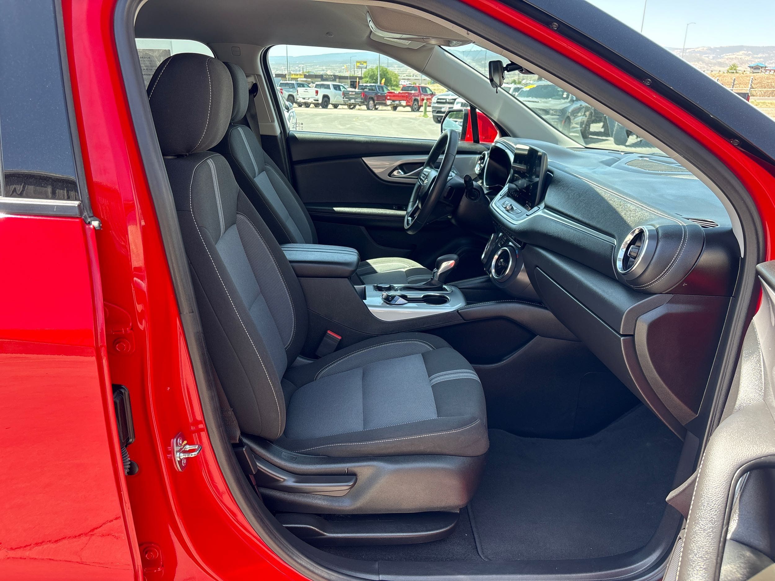 Get ready to ignite your driving experience with the 2023 Chevrolet Blazer LT, a striking SUV that commands attention in its vibrant Red Hot exterior. With only one previous owner and a spotless CARFAX report, this vehicle is as reliable as it is stylish. The robust 2.0L Turbo I4 engine delivers an impressive 228 horsepower and 258 lb-ft of torque, ensuring every journey is both powerful and efficient. Equipped with advanced features like all-wheel drive for superior handling, a backup camera for added safety, Bluetooth connectivity for seamless communication, and remote start for ultimate convenience—this Blazer has everything you need.